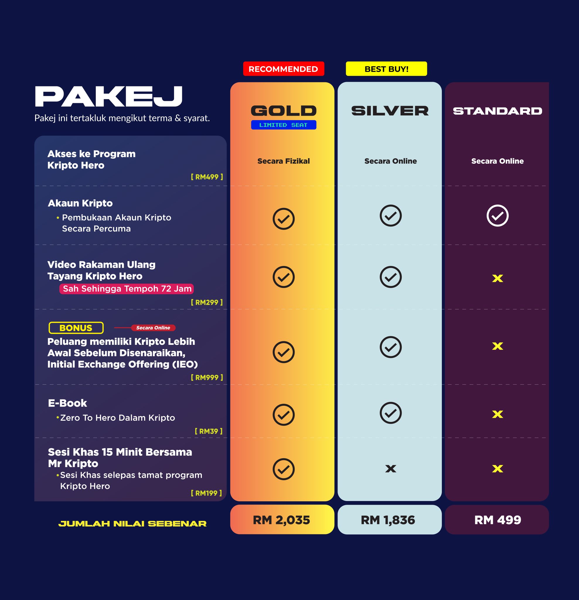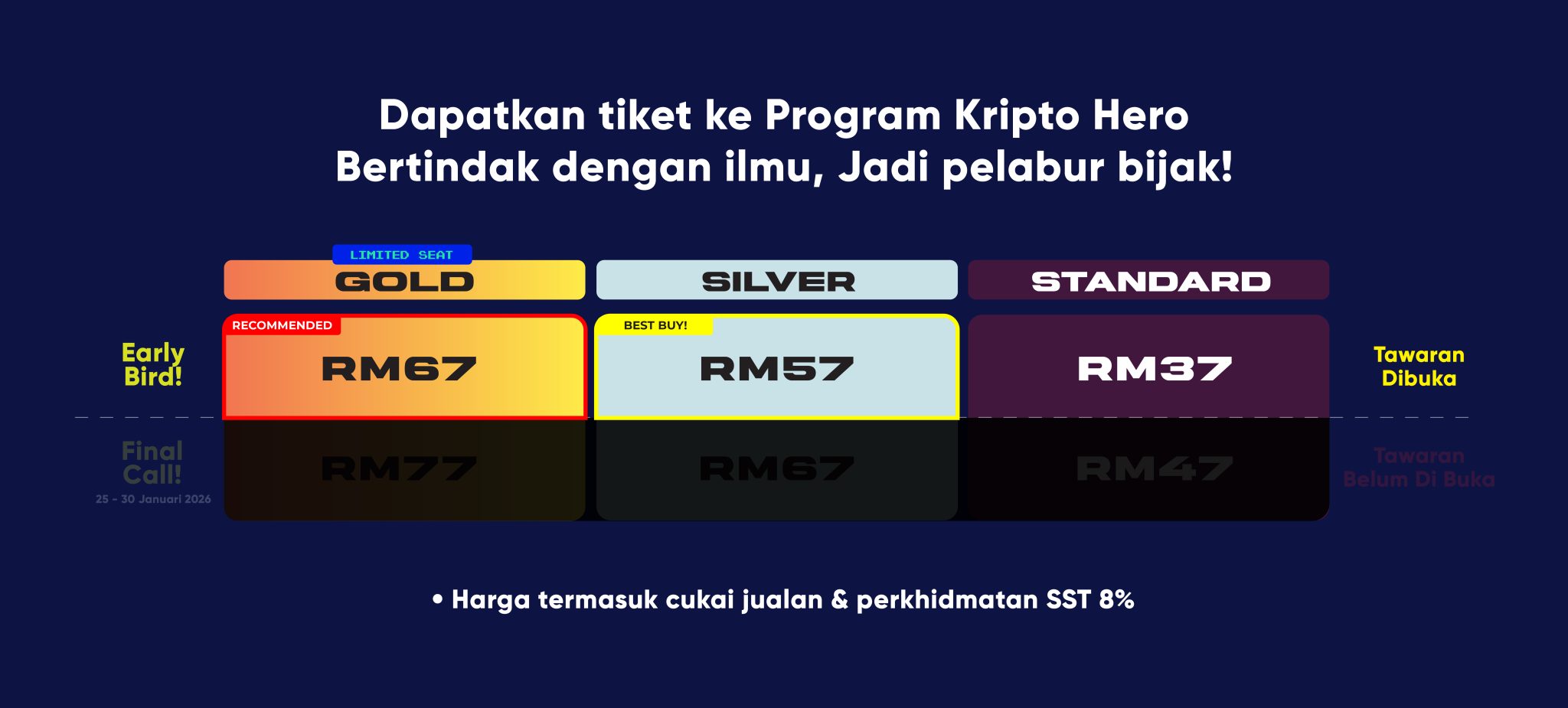 DISCLAMER: Program Labur Kripto ini direka bagi membimbing peserta untuk belajar bagaimana untuk mencapai kejayaan dalam Aset Digital. Walaupun usaha sebaiknya telah diambil untuk mengekalkan Privasi Pelanggan, Program Labur Kripto tidak memberikan jaminan dalam hal ini untuk segala maklumat yang dikomunikasikan oleh dan antara peserta dalam program ini. Kejayaan peserta juga merupakan hasil daripada beberapa faktor termasuklah bimbingan berterusan, ilmu pengetahuan, motivasi, niat peribadi, sikap, ketekunan, kerja keras dan tekad.